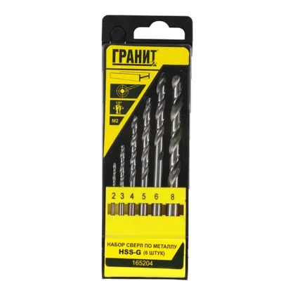 Набор сверл по металлу 6шт, (2-8мм) Гранит HSS-G